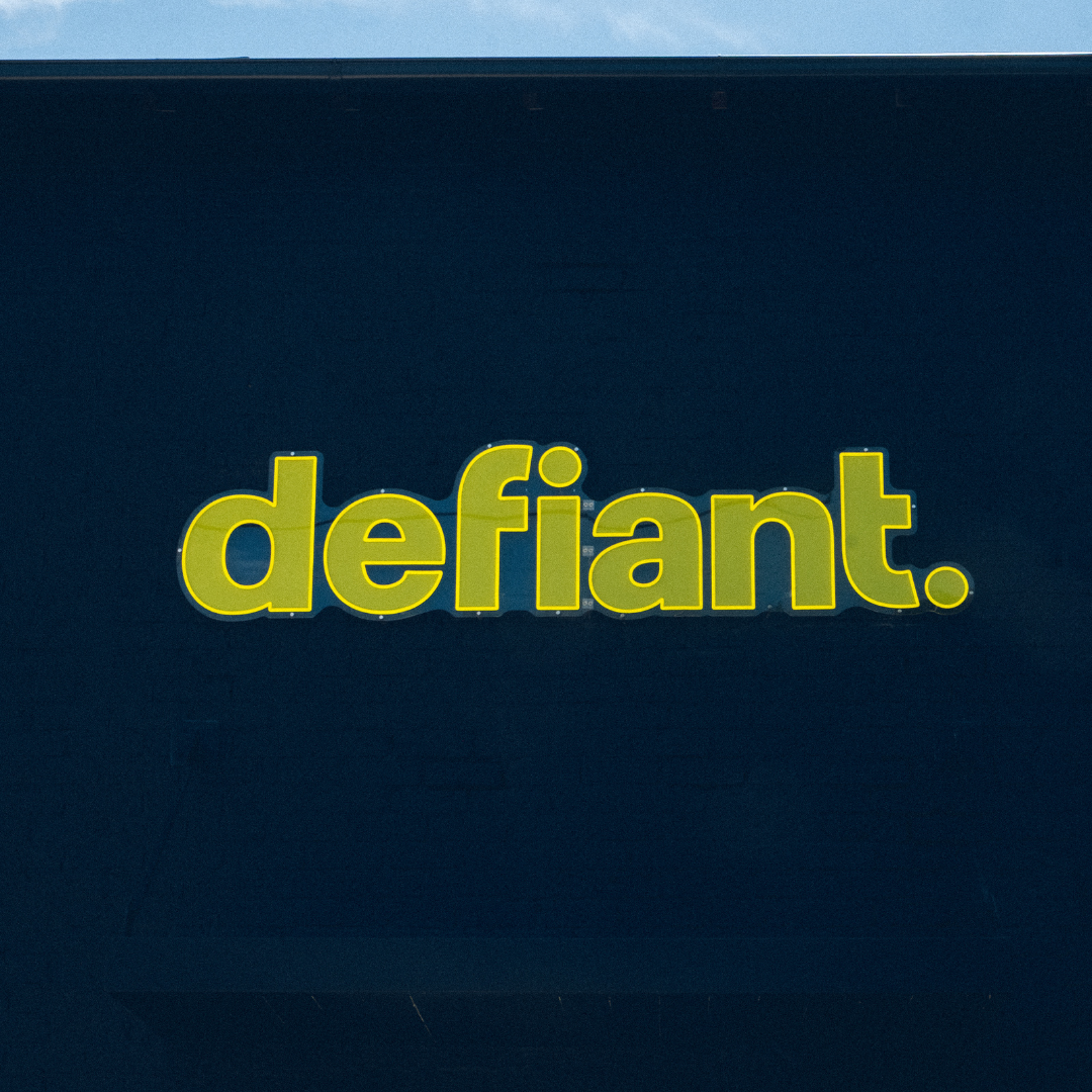 When performance-driven creative agency Defiant opened the doors to their Parramatta headquarters, they needed more than signage. They needed a bold visual statement that captured attention, reinforced their brand identity, and set the tone for every client, event, and piece of content produced inside the studio. We delivered custom illuminated signage that now defines the Defiant HQ experience.
